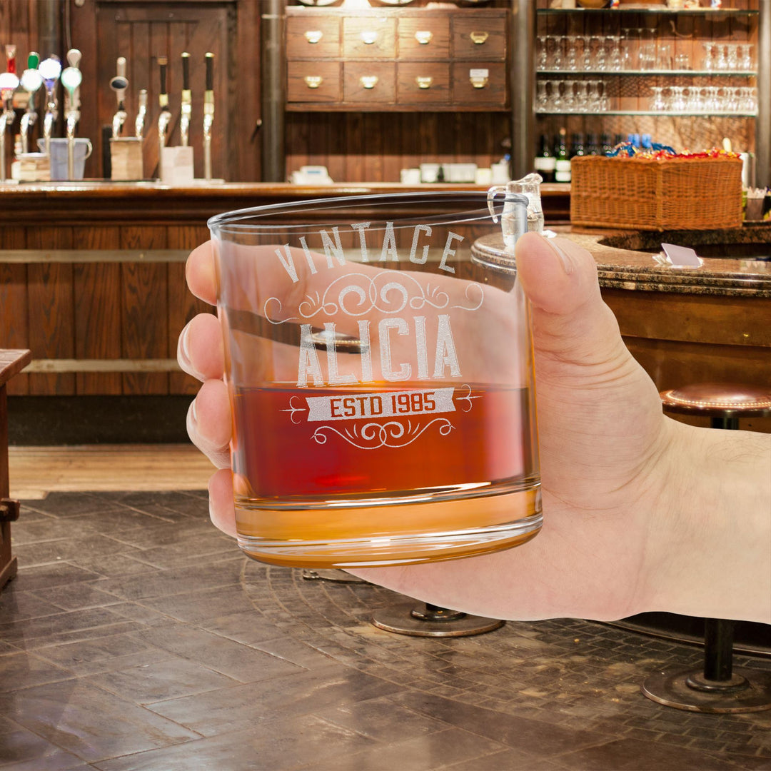 Engraved Vintage Scroll Whiskey Glass