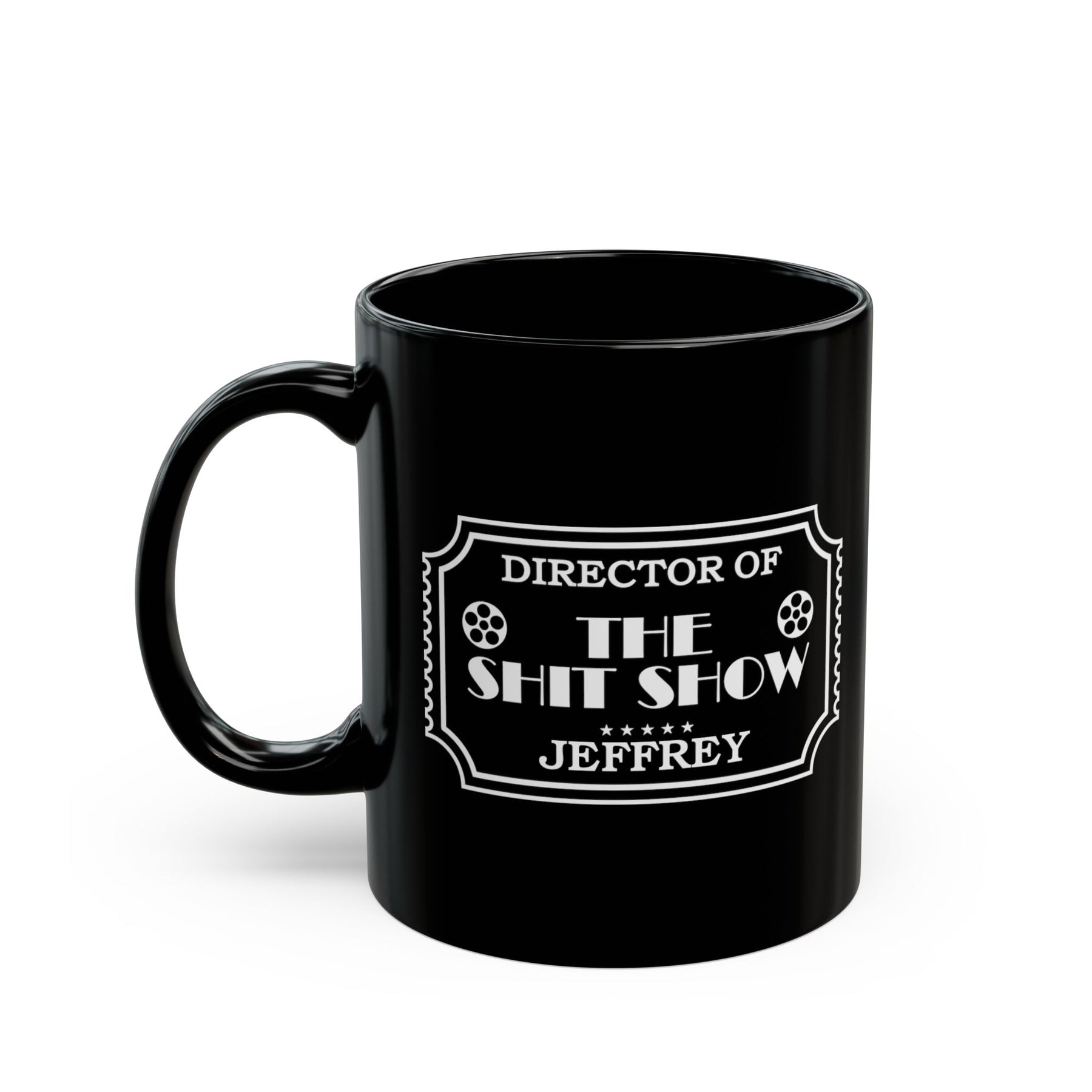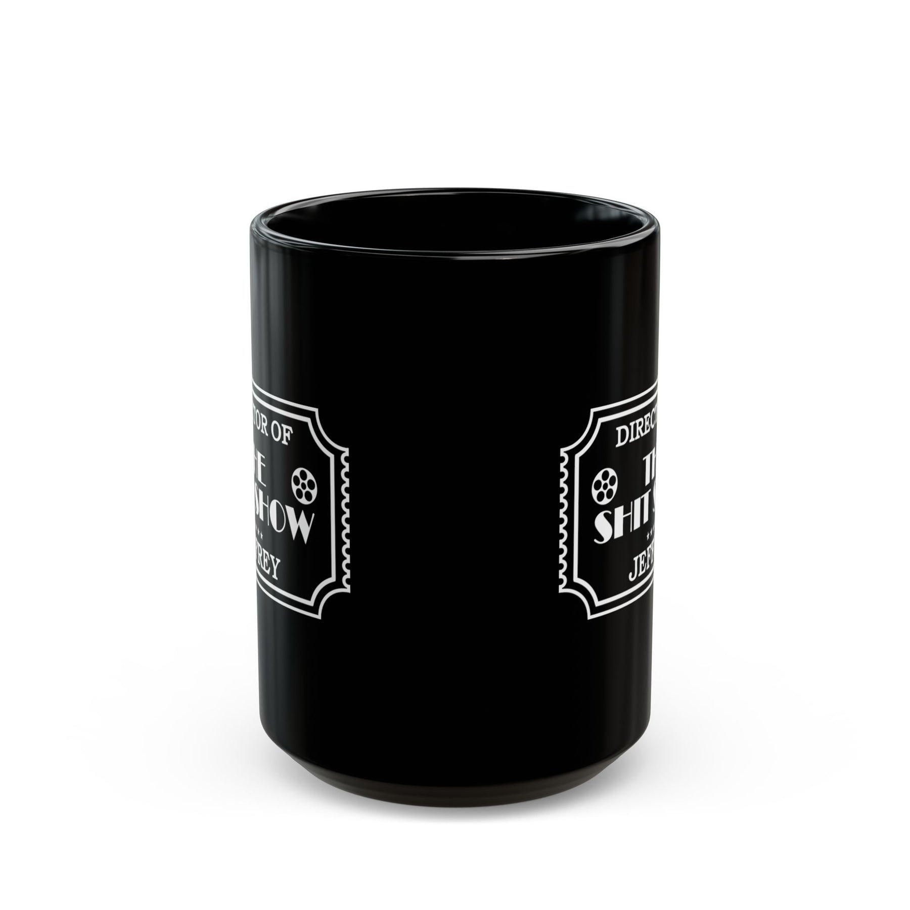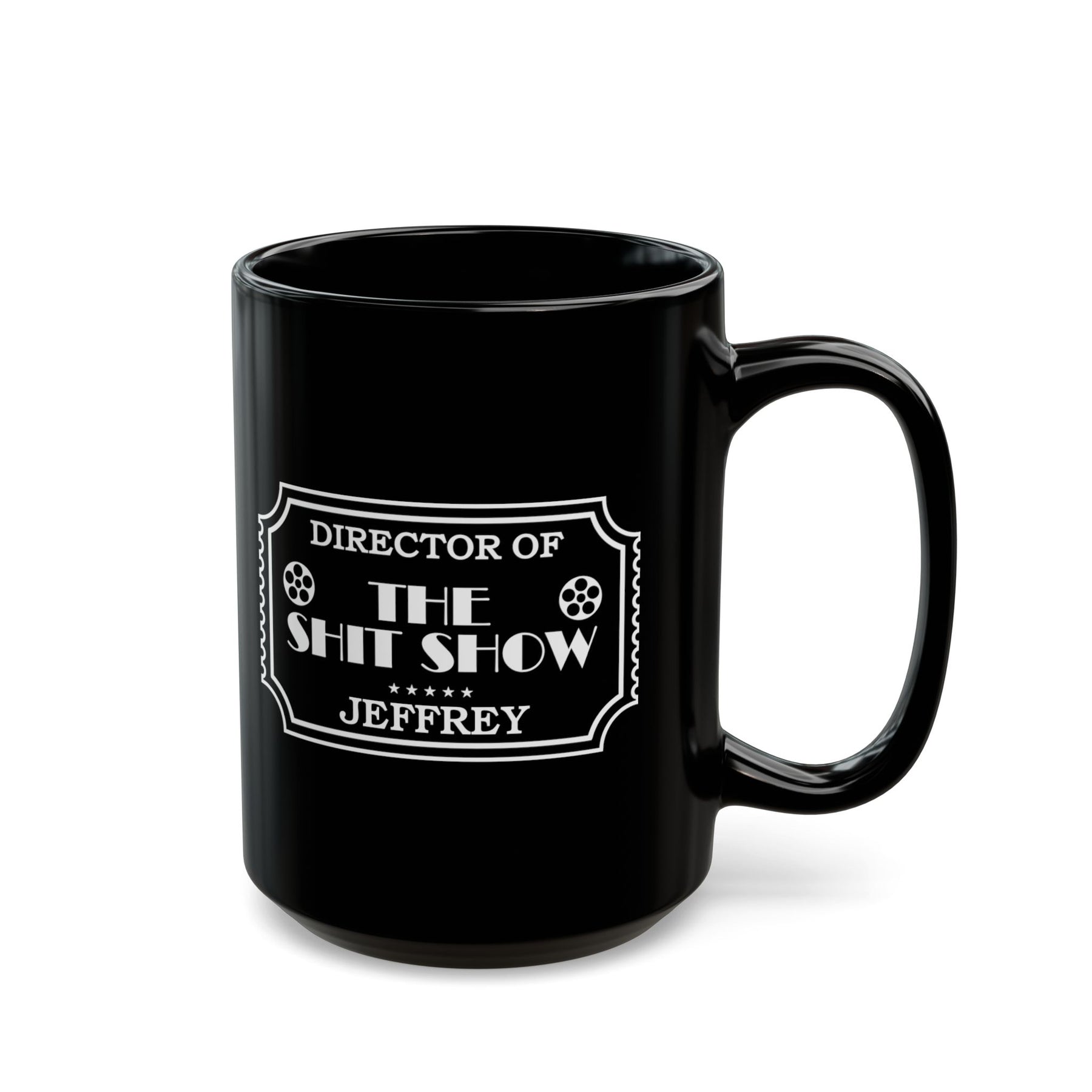 This glossy black ceramic mug carries attitude with a wink. The bold white badge-style print reads “Director of the Shit Show” with a personalized name below, giving mornings a sharp, sarcastic start. Heavy coffee, late-night edits, or chaotic family mornings—this mug sits steady in your hand and keeps the message loud. The high-contrast design pops against the deep black glaze, and the comfortable C-handle makes it easy to grip while you corral the day. It’s straightforward, a little rebellious, and made to be used and laughed about every single morning.